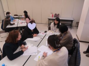 病院(看護師)・行政(助産師・保健師)・国際交流協会・支援者・外国人ママが集まり、グループワークでいろいろな体験をシェアしました。